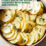 Crispy and flavorful Air Fryer Sliced Potatoes made with simple seasonings and cooked to golden perfection. These thinly sliced potatoes are tossed in a blend of olive oil, garlic, onion powder, paprika, and optional herbs, then air fried for a healthier alternative to traditional fried potatoes. Perfect as a side dish or snack, they are easy to prepare and delightfully crispy without the need for deep frying.