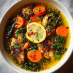This Anti Inflammatory Turmeric Chicken Soup is a warm, nourishing dish packed with wholesome ingredients designed to reduce inflammation and support overall health. Featuring turmeric, ginger, and other spices combined with tender chicken, fresh vegetables, and leafy greens, this soup is both flavorful and comforting. Perfect for a cozy meal that promotes wellness and vitality.
