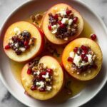These Baked Apples with Feta, Honey, and Cranberries offer a delightful blend of sweet and savory flavors. Tender baked apples are filled with a spiced mix of crumbled feta cheese, dried cranberries, and nuts, then drizzled with honey and baked to perfection. This warm dessert is perfect for cozy evenings or special occasions.