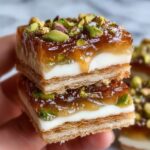 These Baklava Cream Sandwich Cookies combine the rich, nutty flavors of traditional baklava with a creamy, sweet filling. Featuring a buttery spiced cookie packed with pistachios and walnuts, sandwiched with a smooth cream cheese frosting, and finished with a drizzle of caramel sauce and extra nuts, these cookies are an indulgent treat perfect for gatherings or special occasions.