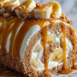 This Banana Caramel Roll Cake is a delightful American dessert featuring a tender banana-flavored sponge cake rolled with luscious caramel sauce, whipped cream, and fresh banana slices. Light and fluffy, it’s perfect for special occasions or an indulgent treat.
