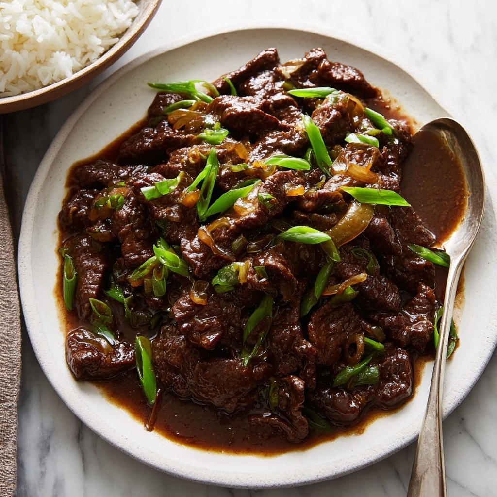 Return the cooked beef and onions to the pan along with any juices collected in the bowl. Toss everything gently together for about a minute until the beef is heated through and fully coated in the thickened sauce. Be careful not to overcook the beef at this stage to keep it tender and luscious.