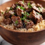 This Beef Tips and Rice Recipe is one of those dishes that feels like a hug on a plate. It’s simple enough to whip up any night of the week yet comforting and rich enough to make every bite feel special. Whether you’re feeding family or cozying up for a solo meal, I promise this recipe will become a cherished staple in your kitchen. Give it a try and enjoy the wholesome goodness it brings!