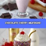 Indulge in a decadent Boozy Chocolate Cherry Milkshake that perfectly blends rich chocolate cherry ice cream with the creamy warmth of Rum Chata. This delightful adult treat features a fun, festive rim of melted chocolate almond bark and sprinkles, topped with whipped cream and a maraschino cherry for the perfect finishing touch.