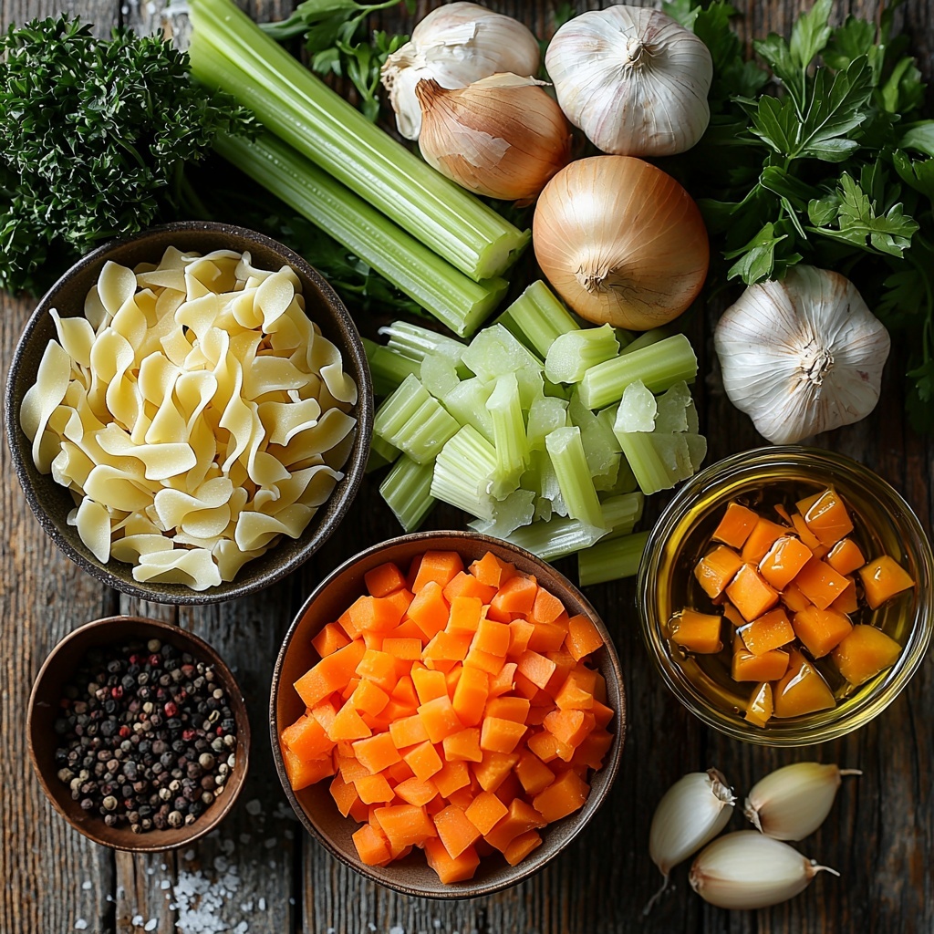 The beauty of this Brodo di Pollo – Italian Noodle Soup Recipe lies in its simplicity, with each ingredient playing a crucial role in building layers of authentic flavor, texture, and color. From fresh vegetables to fragrant herbs, these essentials transform plain chicken broth into a culinary masterpiece.
