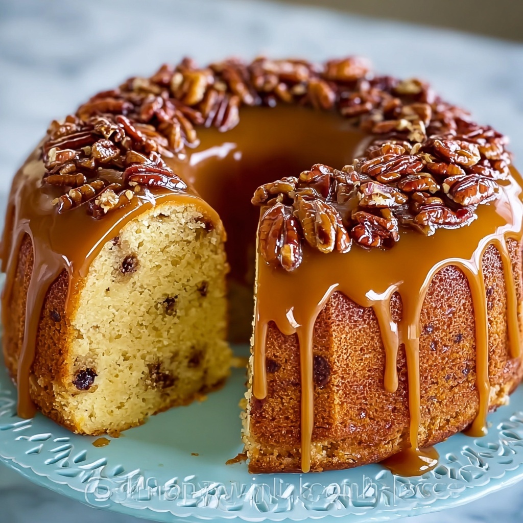 Simple garnishes like a handful of toasted pecans or a light dusting of powdered sugar bring contrast and elegance to your cake’s rich surface. A dollop of whipped cream or a scoop of vanilla ice cream perfectly complements the caramel’s warmth and the cake’s tenderness.