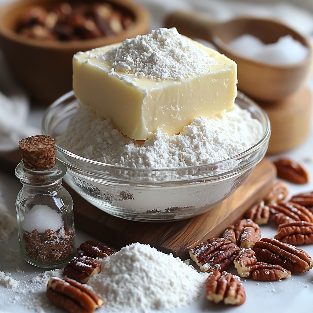Simple, high-quality ingredients are the secret behind the success of this recipe. Each element plays an essential role: the butter provides richness, the powdered sugar adds sweetness and a tender crumb, pecans bring a satisfying crunch and depth, and the flour and salt ensure a perfect, balanced structure and flavor.
