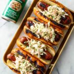 - Toast Buns and Serve: Optionally toast the hot dog buns on the grill just before serving. Place the grilled brats in the buns and top generously with the prepared coleslaw. Serve immediately.