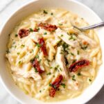 When reheating leftovers, add a splash of chicken broth or cream to loosen the sauce and warm gently over medium heat on the stovetop. Stir frequently to prevent the orzo from sticking and to restore its creamy consistency.