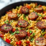 This Cajun Sausage and Rice Skillet is a flavorful one-pan meal packed with smoky sausage, colorful bell peppers, and tender rice, all brought together with spicy Cajun seasoning for a quick and satisfying dinner ready in just 30 minutes.
