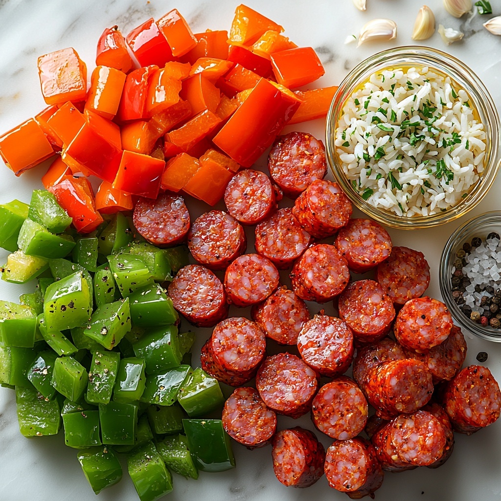 Gathering simple, fresh, and flavorful ingredients is the secret to making this dish truly shine. Each component plays a crucial role: the sausage offers a deliciously smoky base, the colorful bell peppers add crunch and sweetness, and the Cajun seasoning ties it all together with a perfectly balanced kick.