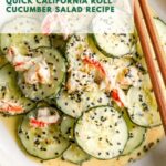 If you want to impress guests, serve this California Roll Cucumber Salad Recipe in individual bamboo bowls or small sushi boats. You could also hollow out cucumbers and fill them with the salad for a fun, bite-sized presentation that’s perfect for parties or potlucks.