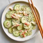 If you want to impress guests, serve this California Roll Cucumber Salad Recipe in individual bamboo bowls or small sushi boats. You could also hollow out cucumbers and fill them with the salad for a fun, bite-sized presentation that’s perfect for parties or potlucks.