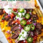 A flavorful Carne Asada Fries recipe featuring marinated skirt steak, crispy baked fries topped with melted cheddar cheese, fresh tomato, jalapeños, red onion, and a creamy sour cream finish. Perfect for a satisfying meal with a delicious Mexican-inspired twist.