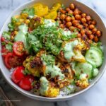 Fresh garnishes take this Cauliflower Shawarma Bowls Recipe to the next level. Sprinkle chopped fresh herbs like cilantro and parsley for that extra pop of color and freshness. Toasted pine nuts or walnuts add an unexpected crunch, while a few pomegranate seeds offer a juicy burst and vibrant jewel-like contrast.