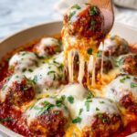 Deliciously cheesy and tender chicken Parmesan meatballs baked to perfection, smothered in marinara sauce and topped with melted mozzarella cheese. Perfect for a comforting Italian-American main course that’s family-friendly and easy to prepare.