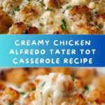 This Chicken Alfredo Tater Tot Casserole is a creamy and comforting American main course that combines tender cooked chicken with rich Alfredo sauce, topped with crispy tater tots and melted mozzarella and Parmesan cheeses. Perfect for an easy weeknight dinner, this casserole is hearty, flavorful, and family-friendly.