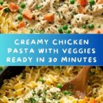This delicious Chicken Pot Pie Meets Pasta recipe is a comforting and creamy one-pan dish that combines tender chicken, mixed vegetables, and pasta in a rich, savory sauce. Perfect for a quick weeknight dinner, this skillet meal delivers all the cozy flavors of a classic chicken pot pie with the ease of a pasta dish, ready in just 30 minutes.