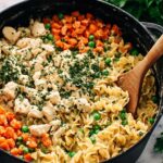This delicious Chicken Pot Pie Meets Pasta recipe is a comforting and creamy one-pan dish that combines tender chicken, mixed vegetables, and pasta in a rich, savory sauce. Perfect for a quick weeknight dinner, this skillet meal delivers all the cozy flavors of a classic chicken pot pie with the ease of a pasta dish, ready in just 30 minutes.