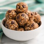 These protein balls are best enjoyed cold or at room temperature rather than reheated. Just let them sit out for a few minutes if they come straight from the fridge or freezer to soften up slightly before digging in.