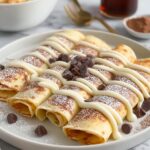- Prepare the Glaze: In a bowl, whisk together the softened cream cheese, milk, and powdered sugar or sweetener until smooth and creamy. Drizzle the glaze over the rolled crepes before serving for a sweet finishing touch.