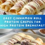 Delight in these Cinnamon Roll Protein Crepes, a high-protein, flavorful breakfast option that combines the sweet warmth of cinnamon rolls with the light texture of crepes. Made with vanilla protein powder and almond milk, these crepes are both nutritious and satisfying, featuring a creamy Greek yogurt cinnamon filling and a luscious cream cheese glaze.