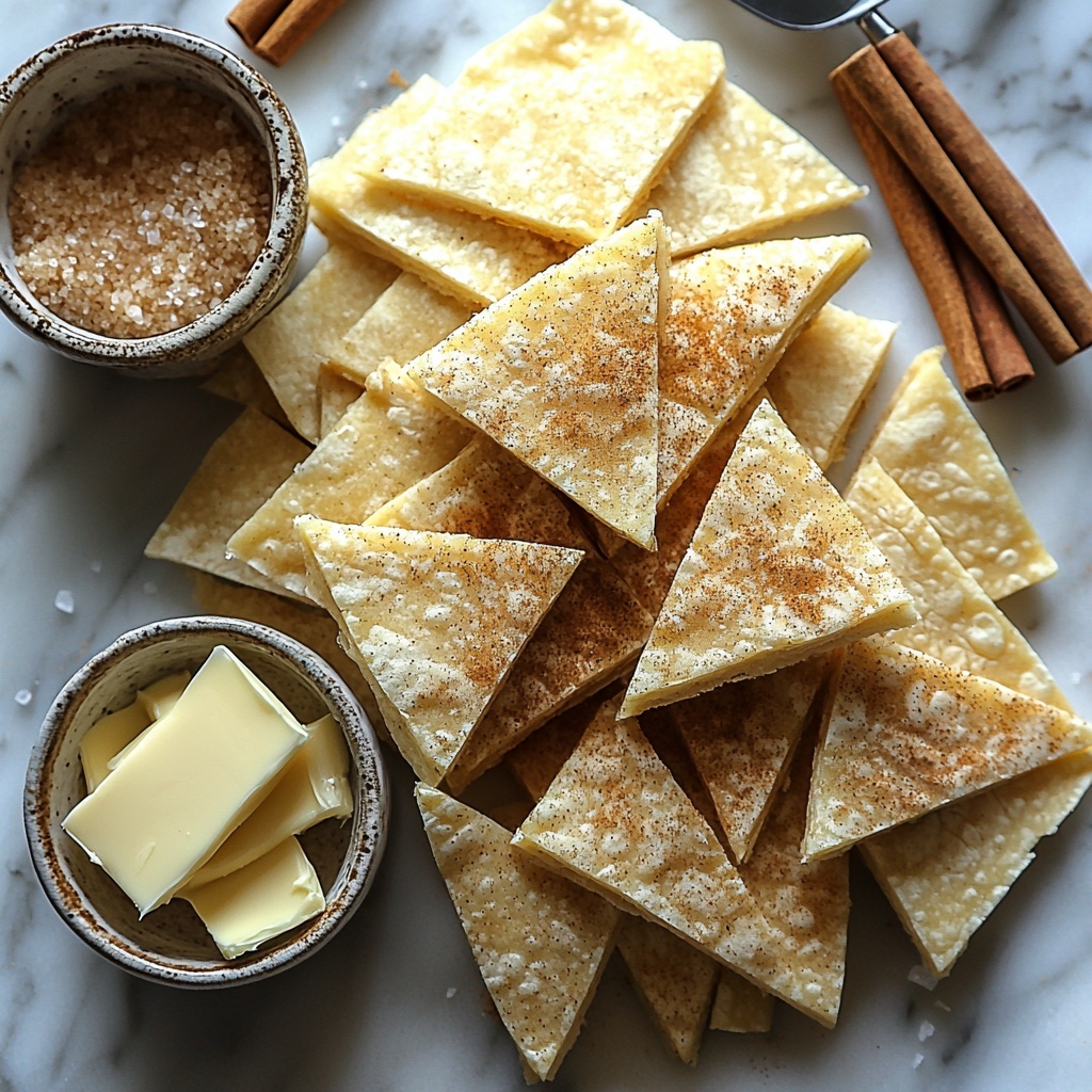 - Melted butter or neutral oil: Helps the cinnamon-sugar stick and promotes golden, crispy chips.