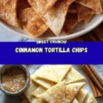 Crispy and sweet Cinnamon Tortilla Chips made by baking or frying tortillas coated with cinnamon sugar, perfect for a delightful snack or dessert accompaniment.