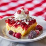 This Cranberry Upside-Down Cake is a delightful twist on traditional upside-down cakes, featuring a vibrant layer of fresh cranberries tossed with sugar, cranberry Jello mix, and orange zest, all baked under a moist white cake infused with white chocolate pudding mix. Perfectly buttery and topped with white chocolate curls and optional whipped cream, this festive dessert combines tart and sweet flavors with a beautiful presentation that’s ideal for holiday gatherings.