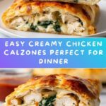This Creamy Chicken Calzone recipe delivers a homemade Italian-inspired dish filled with tender chicken, fresh spinach, and a luscious ricotta cheese blend. Wrapped in golden, flaky pizza dough and baked to perfection, these calzones make a satisfying meal perfect for lunch or dinner. Serve with marinara sauce for a classic touch.