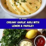 If you are searching for a bright, flavorful sauce that elevates everything from sandwiches to roasted veggies, look no further than this Creamy Garlic Aioli with Lemon and Parsley Recipe. It perfectly balances the richness of mayonnaise with the zesty bite of fresh lemon juice and the aromatic freshness of parsley, all wrapped in a garlicky hug. This aioli creates a creamy, tangy, and herbaceous splash of flavor that feels indulgent yet effortlessly simple, making it an instant favorite for any casual meal or fancy appetizer.