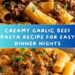 A rich and comforting Creamy Garlic Beef Pasta recipe featuring tender ground beef, aromatic garlic and onions, and a luscious Parmesan cream sauce tossed with fettuccine or your favorite pasta. Perfect for a satisfying weeknight dinner that comes together quickly with simple ingredients.