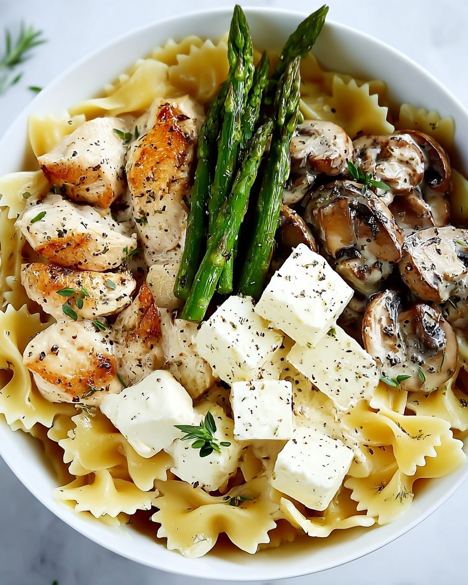 How to Serve Creamy Goat Cheese Pasta with Chicken, Asparagus, and Mushrooms Recipe