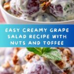 The beauty of this Creamy Grape Salad Recipe lies in its simplicity. Each ingredient plays a crucial role, from the smooth and tangy creaminess of the dairy to the sweet burst of the grapes and the satisfying crunch of nuts and toffee that add depth and texture to every bite.
