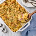 How to Serve Creamy Ham Noodle Casserole with Cheddar, Parmesan, and Panko Breadcrumb Topping Recipe