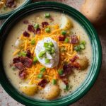This creamy loaded baked potato soup combines tender baked russet potatoes with a rich blend of cheddar cheese, sour cream, and crispy bacon. Perfectly seasoned and finished with green onions and smoked paprika, this comforting soup is ideal for chilly days or cozy dinners.