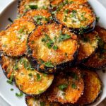 This Crispy Baked Eggplant Parmesan is a healthier twist on the classic Italian comfort food. Sliced eggplants are salted and baked with a crunchy breadcrumb and Parmesan coating, layered with marinara sauce and melted mozzarella cheese, then baked until bubbly and golden. Perfectly crispy on the outside and tender inside, it’s a delicious vegetarian main course that’s great for family dinners.