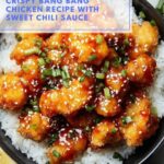 Crispy Bang Bang Chicken is a flavorful and crunchy dish featuring tender bite-sized chicken pieces fried to golden perfection and tossed in a creamy, spicy, and sweet bang bang sauce. Perfect as an appetizer or a main course, this recipe combines a crispy corn starch coating with a vibrant sauce made of mayonnaise, Thai sweet chili sauce, honey, and rice vinegar, garnished with fresh scallions for a burst of freshness.