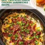 - Add Toppings: Sprinkle the shredded cheddar cheese, crumbled cooked bacon, and sliced scallions evenly over the chicken mixture in the crockpot.