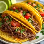 - Serve the Tacos: Warm the corn or flour tortillas. Fill each tortilla with the shredded beef and top with your favorite toppings such as chopped cilantro, diced onion, lime wedges, sliced avocado, shredded cheese, or sour cream. Enjoy your homemade shredded beef tacos!