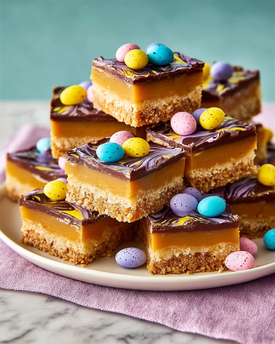 There’s nothing quite like the rich layers of the Easter Millionaire’s Squares Recipe to make your holiday dessert table shine. It’s a sweet celebration of textures and flavors that everyone will love, and the colorful decorations add an extra touch of springtime joy. Trust me, once you try this recipe, it will become your go-to treat for every Easter and beyond!