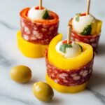 These Easy Antipasto Skewers are a delightful and colorful appetizer combining artichoke hearts, soppressata salami, pepperoncini peppers, mini bocconcini cheese, and green olives. Perfect for parties, gatherings, or a simple snack, these no-cook skewers are quick to assemble and offer a variety of savory flavors and textures.