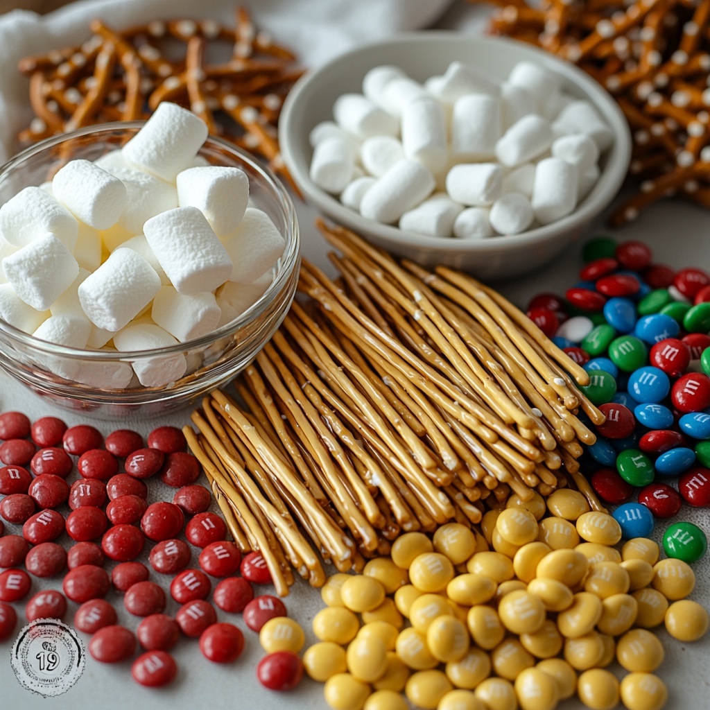 - Combine Dry Ingredients. In a large mixing bowl, mix the pretzels, mini marshmallows, and half of the M&M candies, distributing the colors and textures evenly.