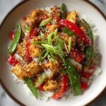 Firecracker Chicken Stir Fry is a vibrant and flavorful dish featuring tender chicken pieces and crisp vegetables tossed in a sweet and spicy sauce. Perfect for a quick weeknight meal, this stir fry combines garlic, bell peppers, snow peas, and a fiery red pepper flake kick, balanced with the sweetness of chili and hoisin sauces.
