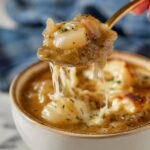 - Serve and Garnish: Let the soup cool slightly for a couple of minutes. Garnish with fresh thyme leaves or parsley if desired, then serve while the cheese is gooey and the soup is piping hot.