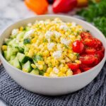 This Fresh Corn Salad with Feta, Tomatoes, Cucumber, and Herb Dressing Recipe is pure joy in a bowl and a celebration of simple, fresh ingredients coming together in harmony. It’s the kind of dish that convinces you to take just one more bite — and then another. Give it a try; I promise it will brighten your table and your day.