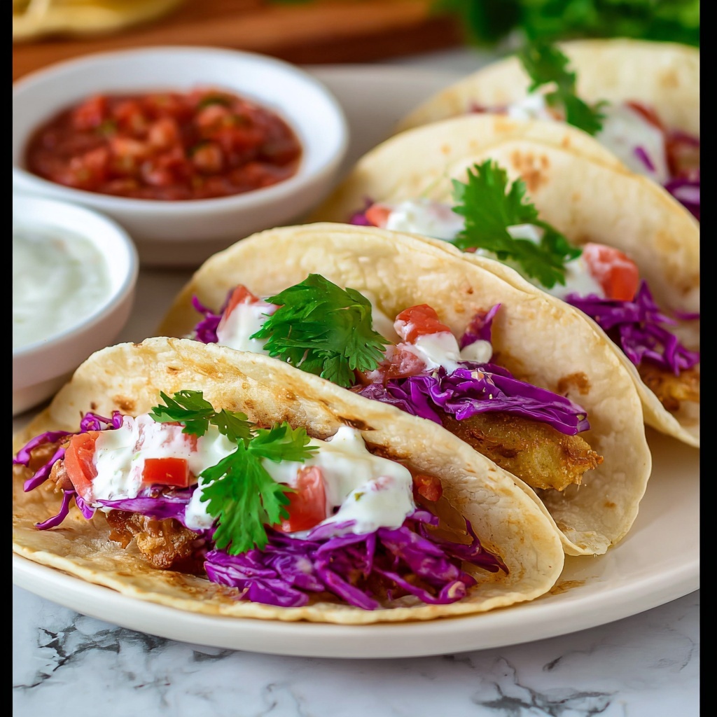 These Fried Chicken Tacos combine crispy breaded chicken tenders with a fresh, tangy slaw and creamy lime-cilantro sauce, all wrapped in warm flour tortillas. Perfect for a quick and satisfying meal that brings together bold flavors and fun textures.