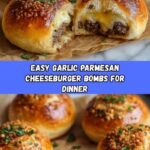 Garlic Parmesan Cheeseburger Bombs are savory bite-sized treats featuring a juicy ground beef and cheddar cheese filling encased in soft biscuit dough, baked to golden perfection and brushed with a flavorful garlic Parmesan butter. Perfect as an appetizer or satisfying snack, these bombs combine classic cheeseburger flavors with a buttery, garlicky finish.