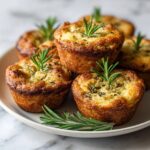 These Garlic Rosemary Focaccia Muffins are soft, flavorful individual focaccia breads infused with fresh rosemary and garlic. Perfectly golden and topped with coarse sea salt, these savory muffins make an excellent snack or accompaniment to any meal. Their fluffy texture and aromatic herbs create an irresistible bite-sized focaccia experience.