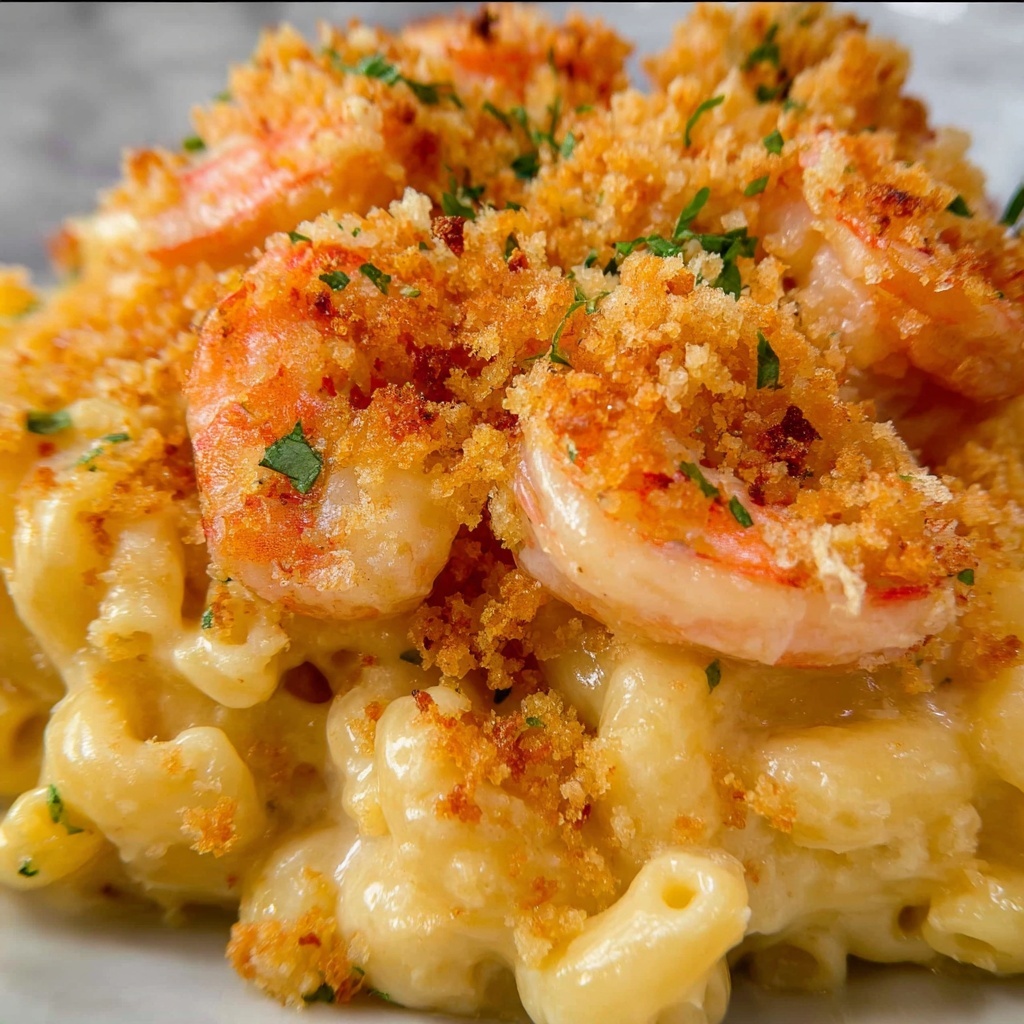 This creamy and flavorful Garlic Shrimp Mac and Cheese combines succulent prawns sautéed with garlic and a rich, cheesy sauce enveloping perfectly cooked elbow macaroni. Topped with a crunchy golden breadcrumb crust, this comforting dish is quick to prepare and perfect for a satisfying family meal.